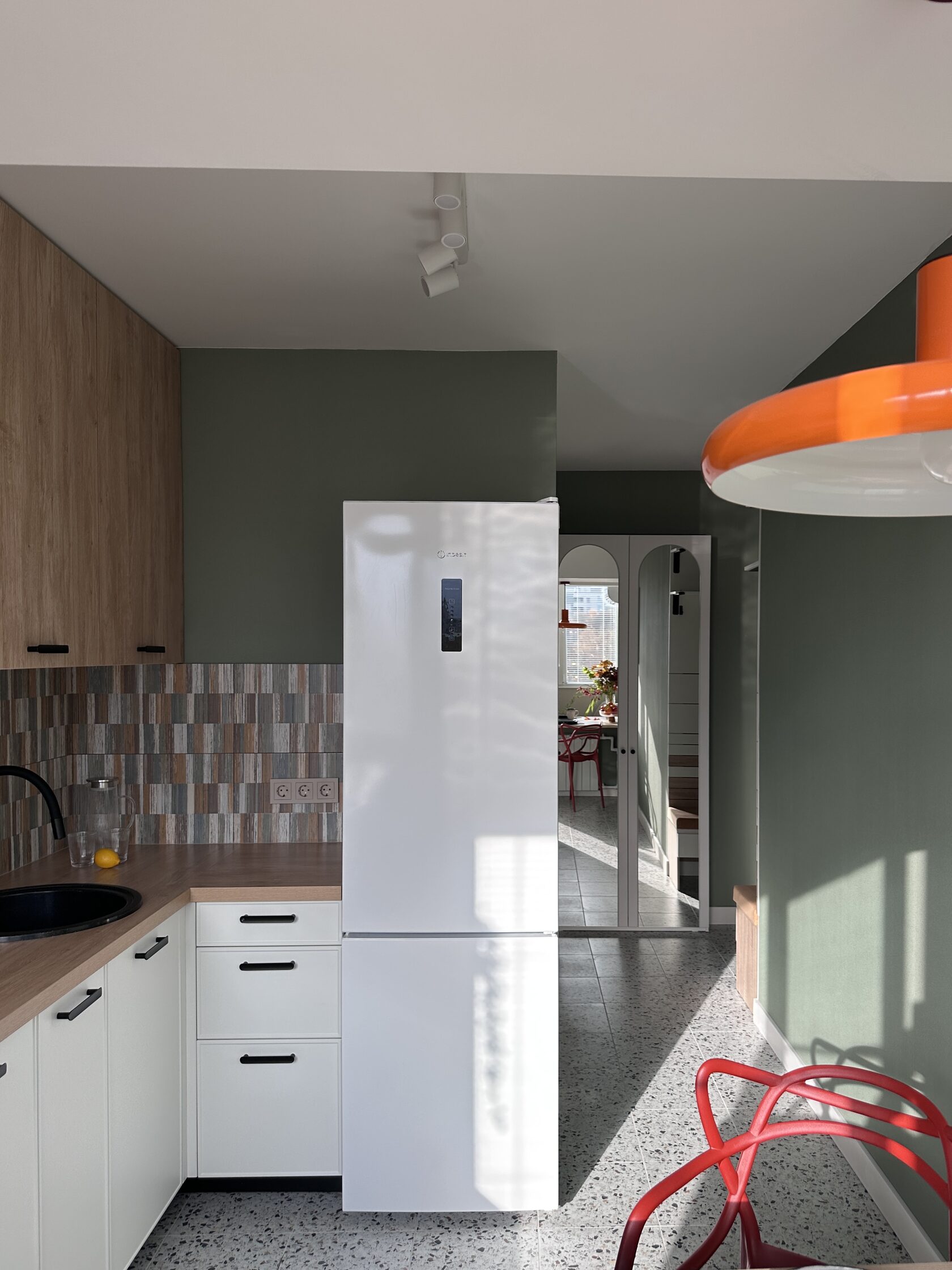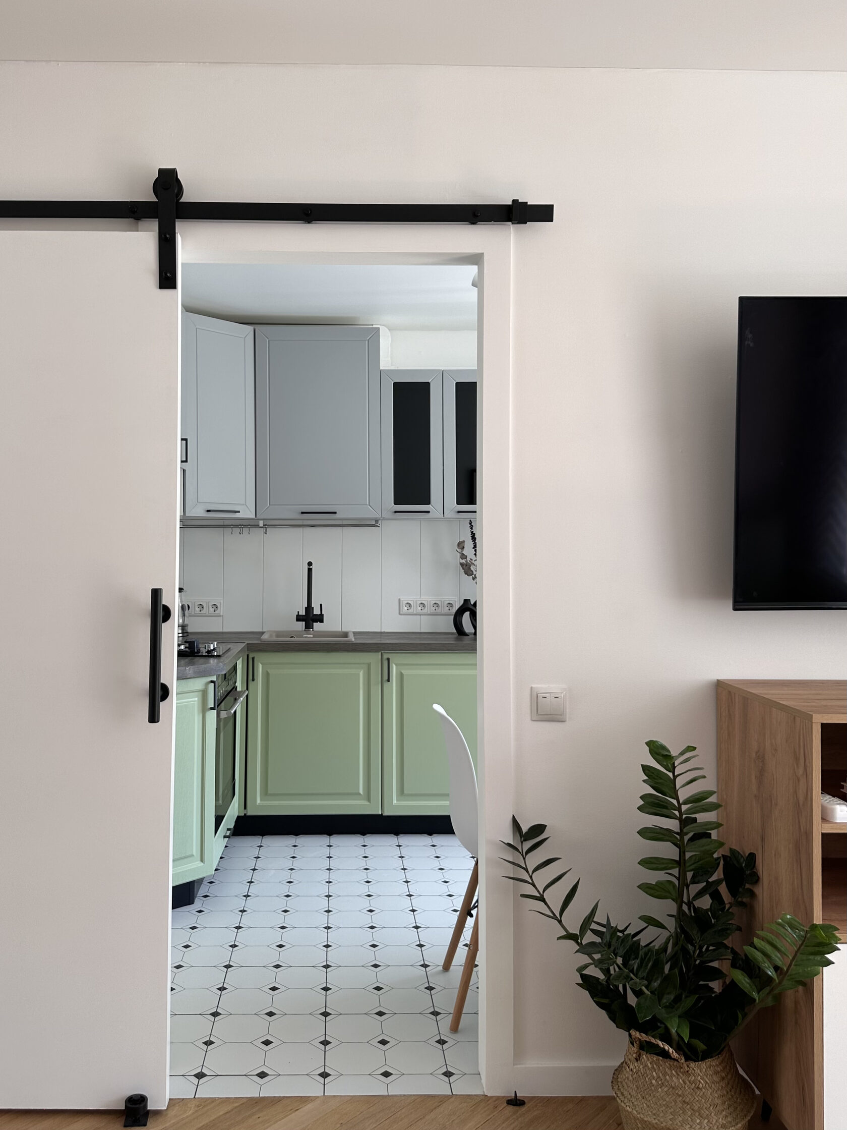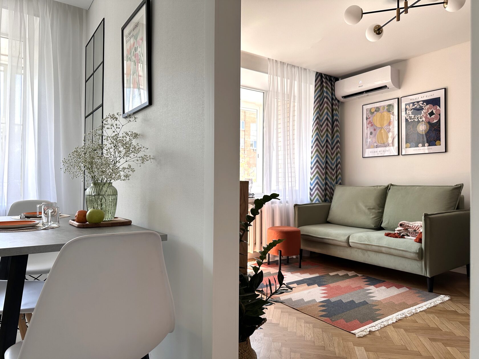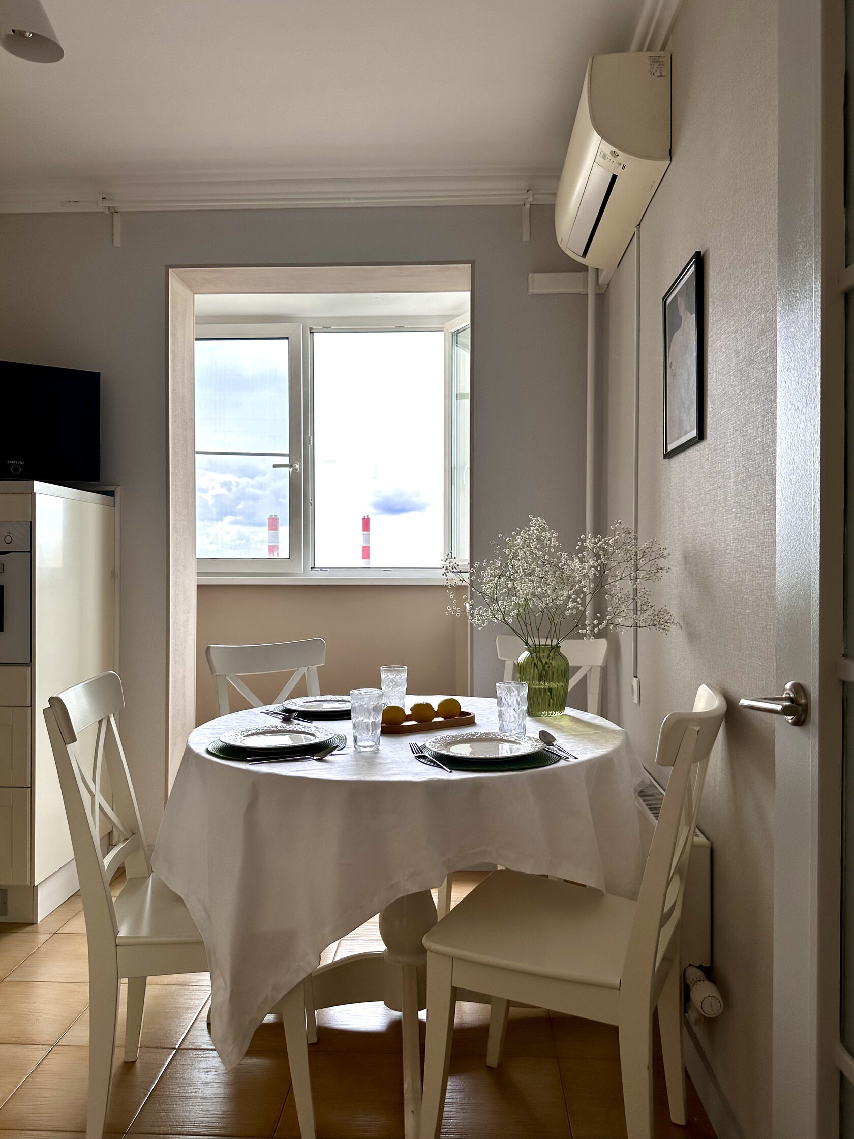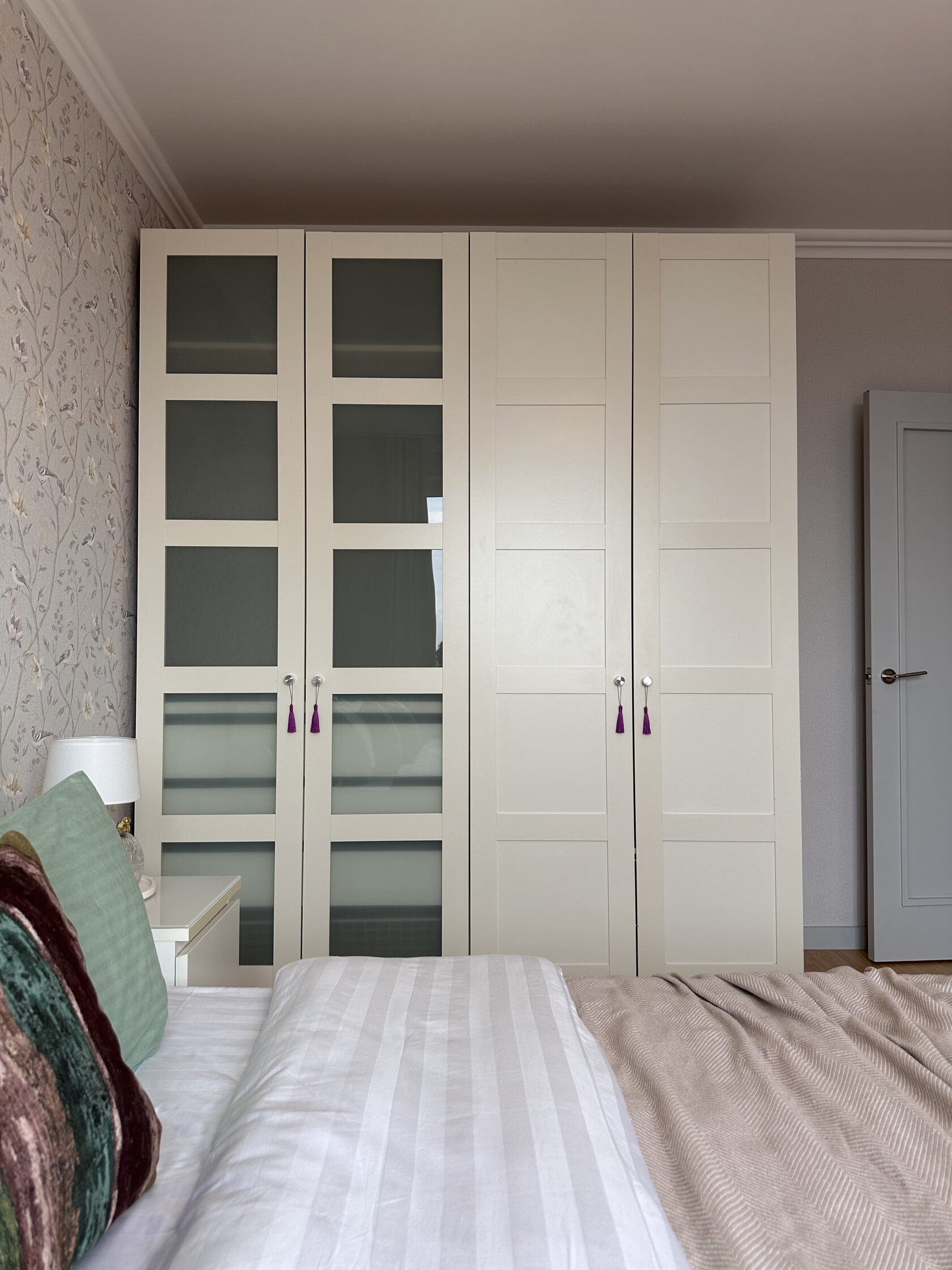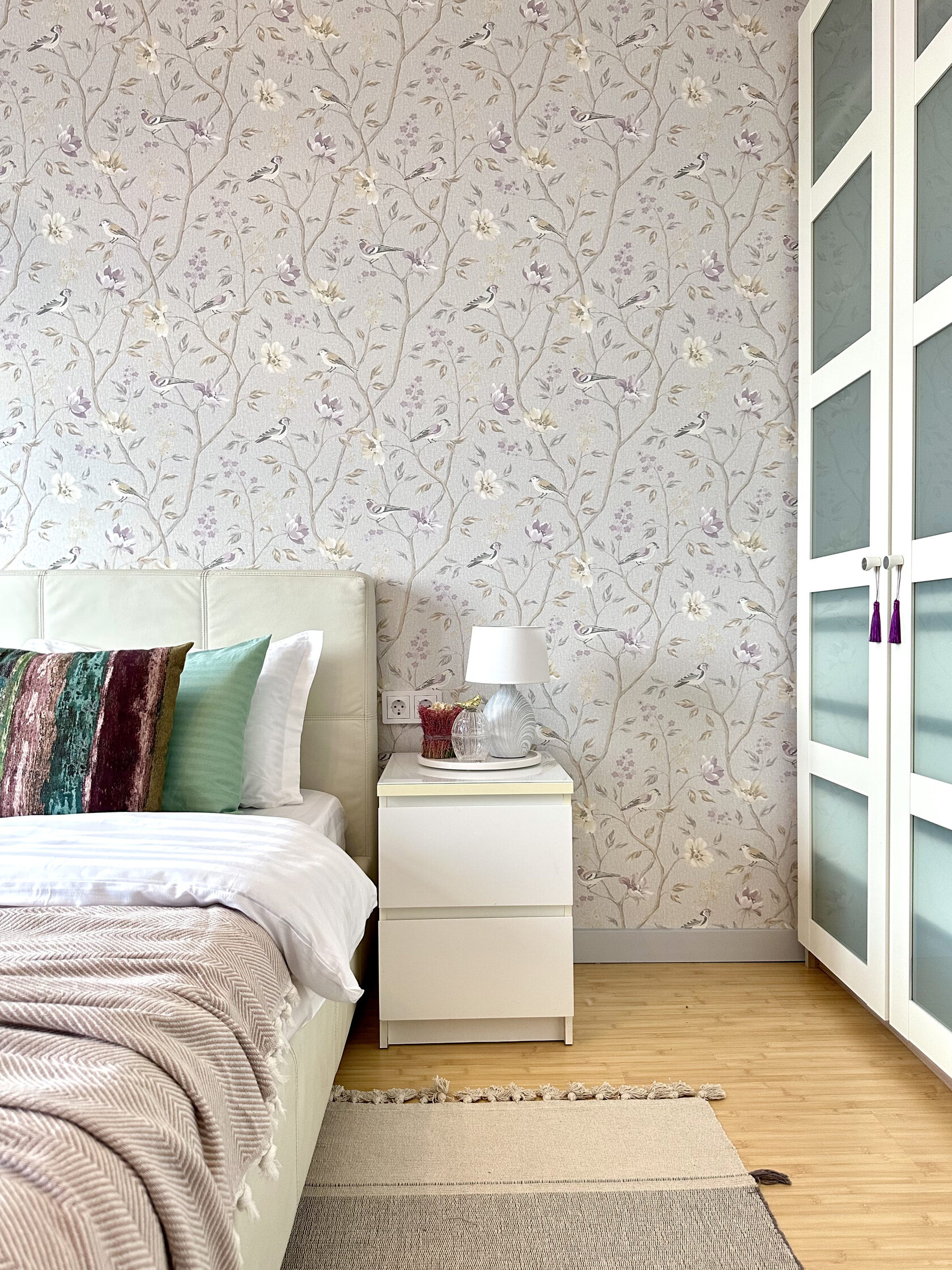 Квартира расположена в старой части Москвы в здании 1913 года, в квартире много окон, что дает дополнительный свет, но также и дополнительные ограничения по расположению стен для выделения комнат. Квартира делится на 3 зоны - общественная, зона для сына-подростка с своим санузлом и приватная зона для хозяйки - спальня, мастер-ванная, гардероб и кабинет.