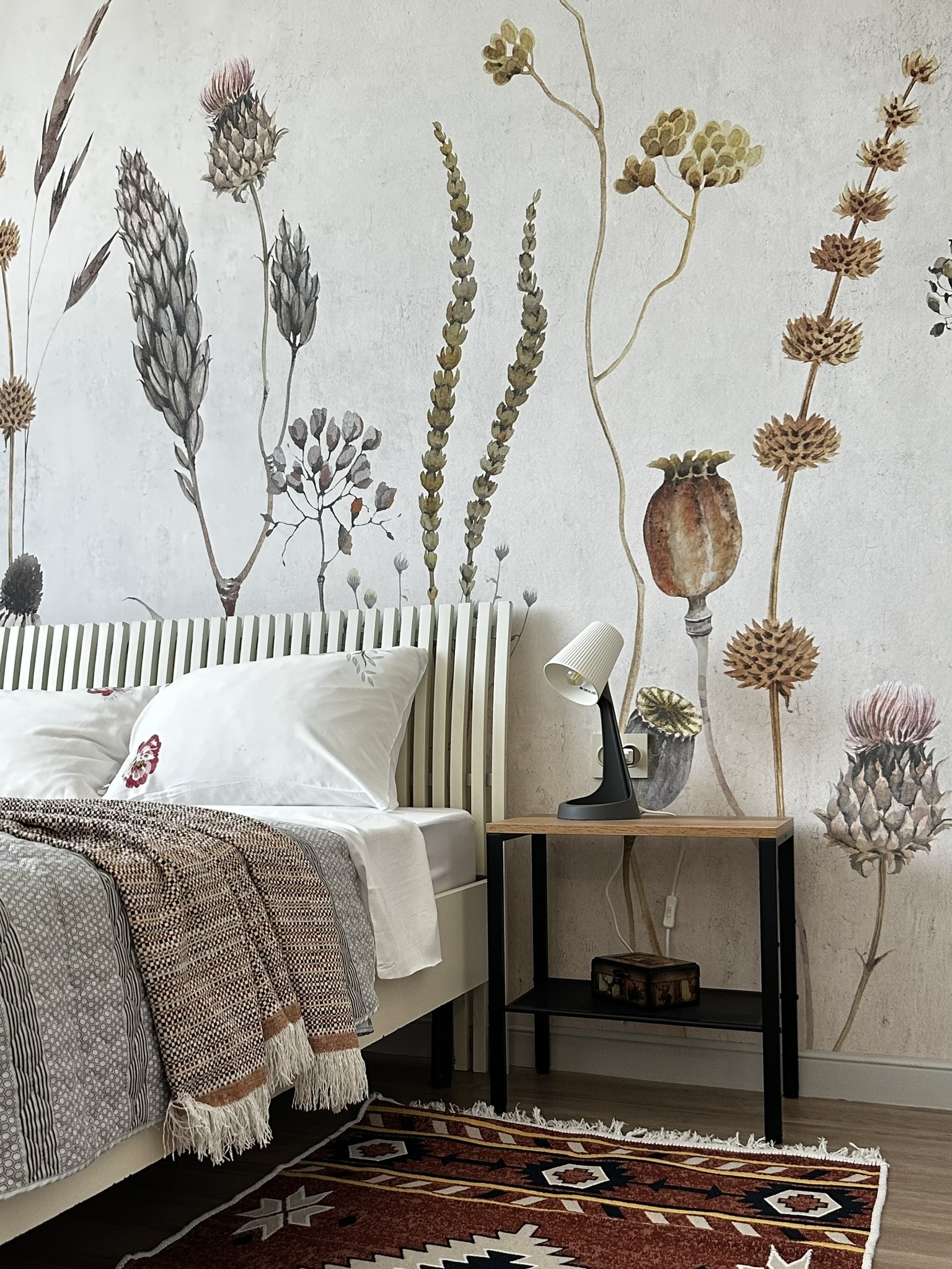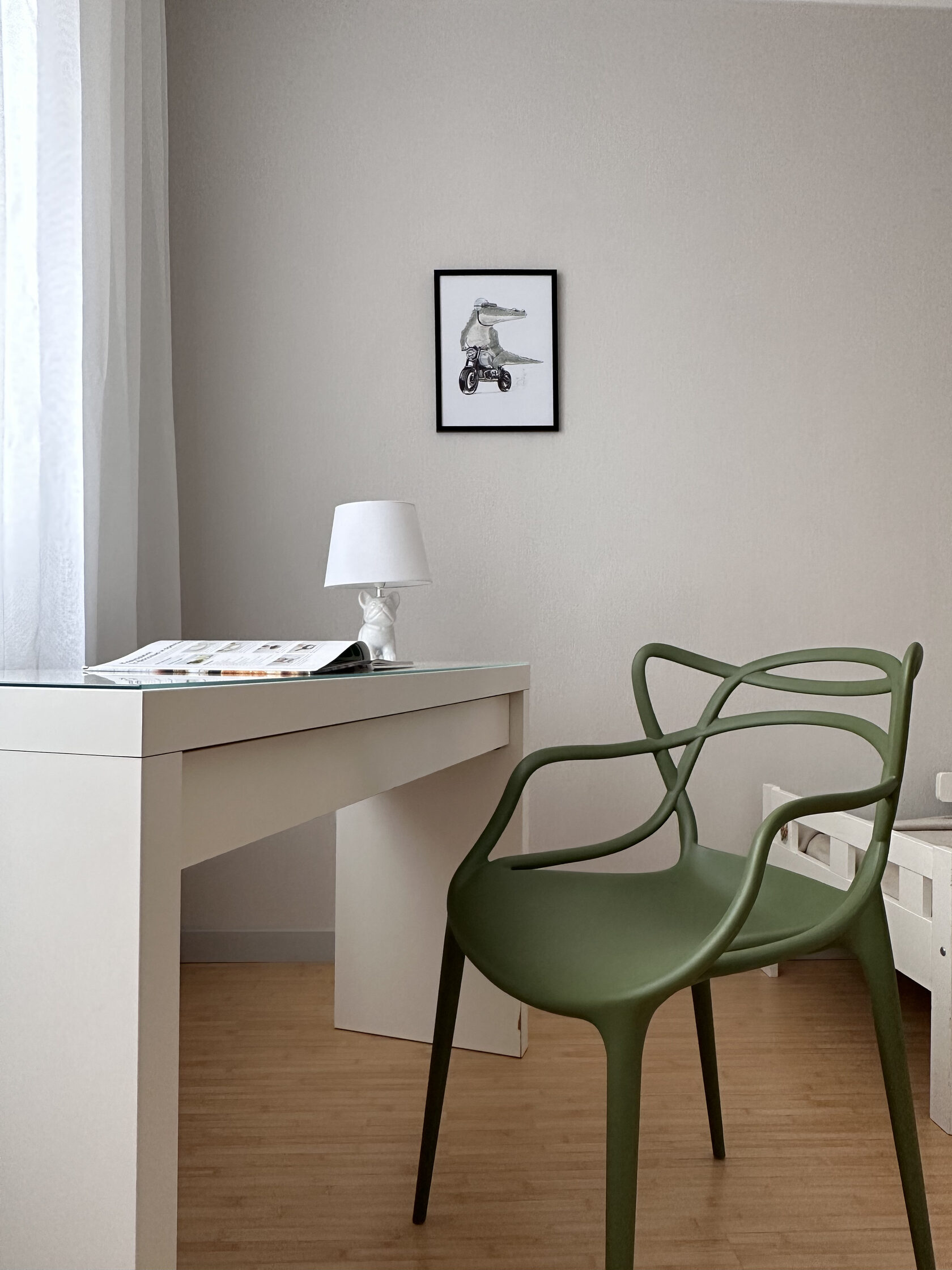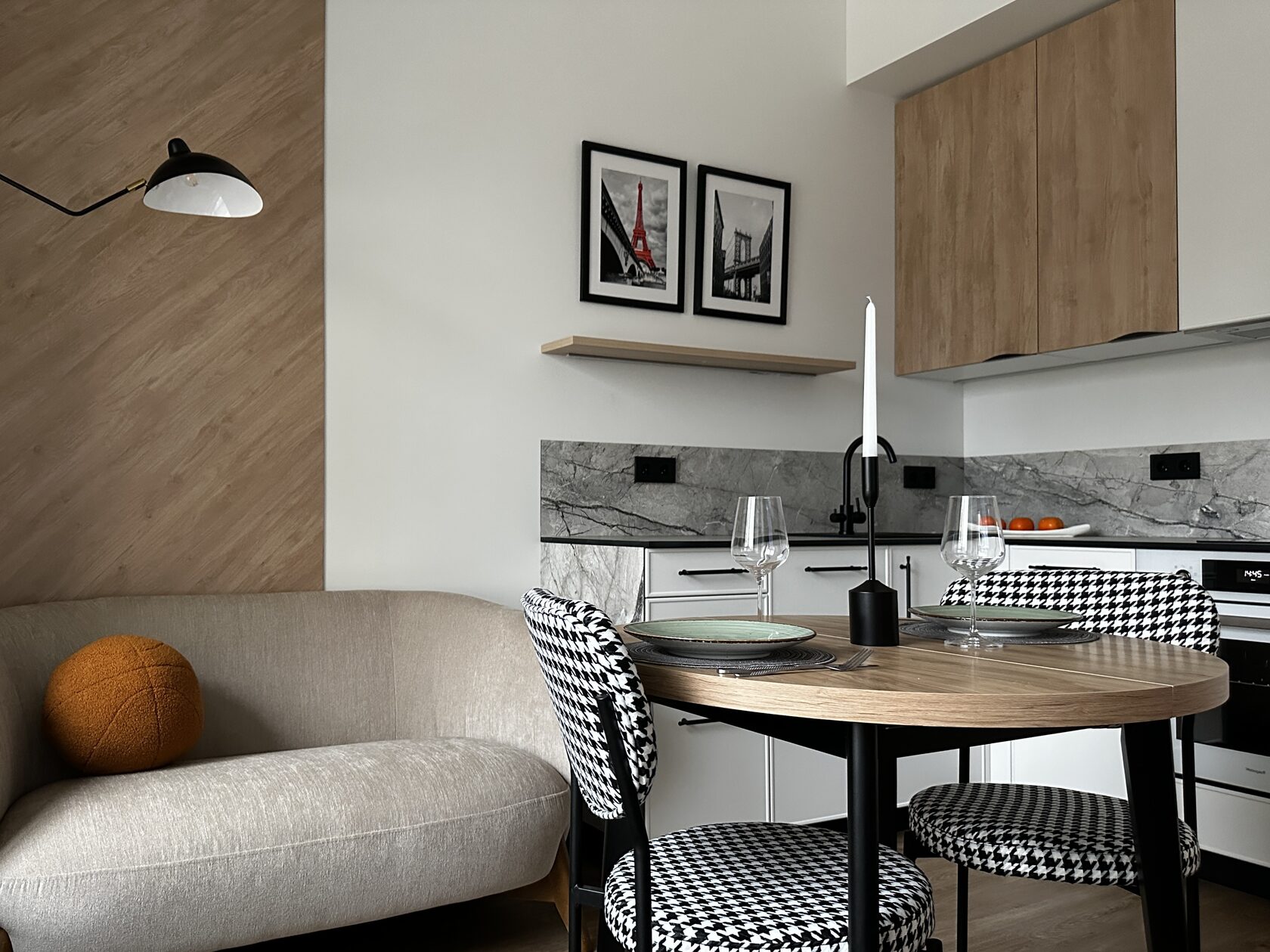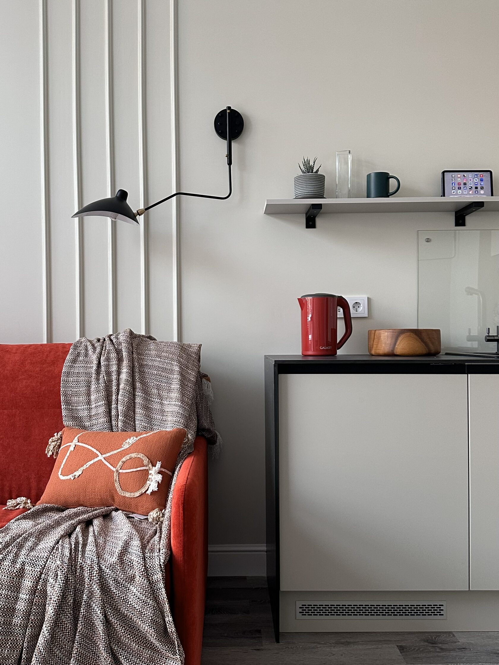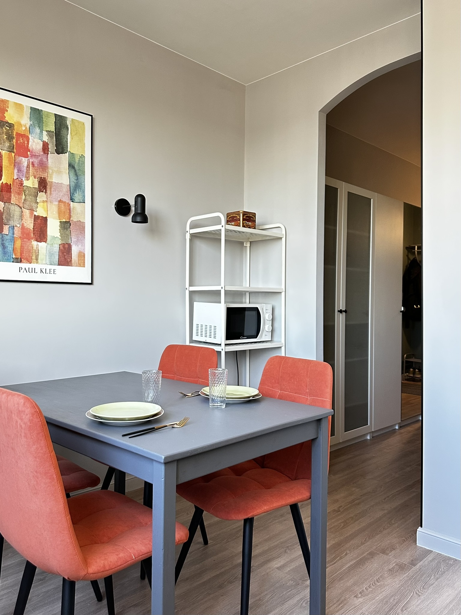Квартира расположена в старой части Москвы в здании 1913 года, в квартире много окон, что дает дополнительный свет, но также и дополнительные ограничения по расположению стен для выделения комнат. Квартира делится на 3 зоны - общественная, зона для сына-подростка с своим санузлом и приватная зона для хозяйки - спальня, мастер-ванная, гардероб и кабинет.